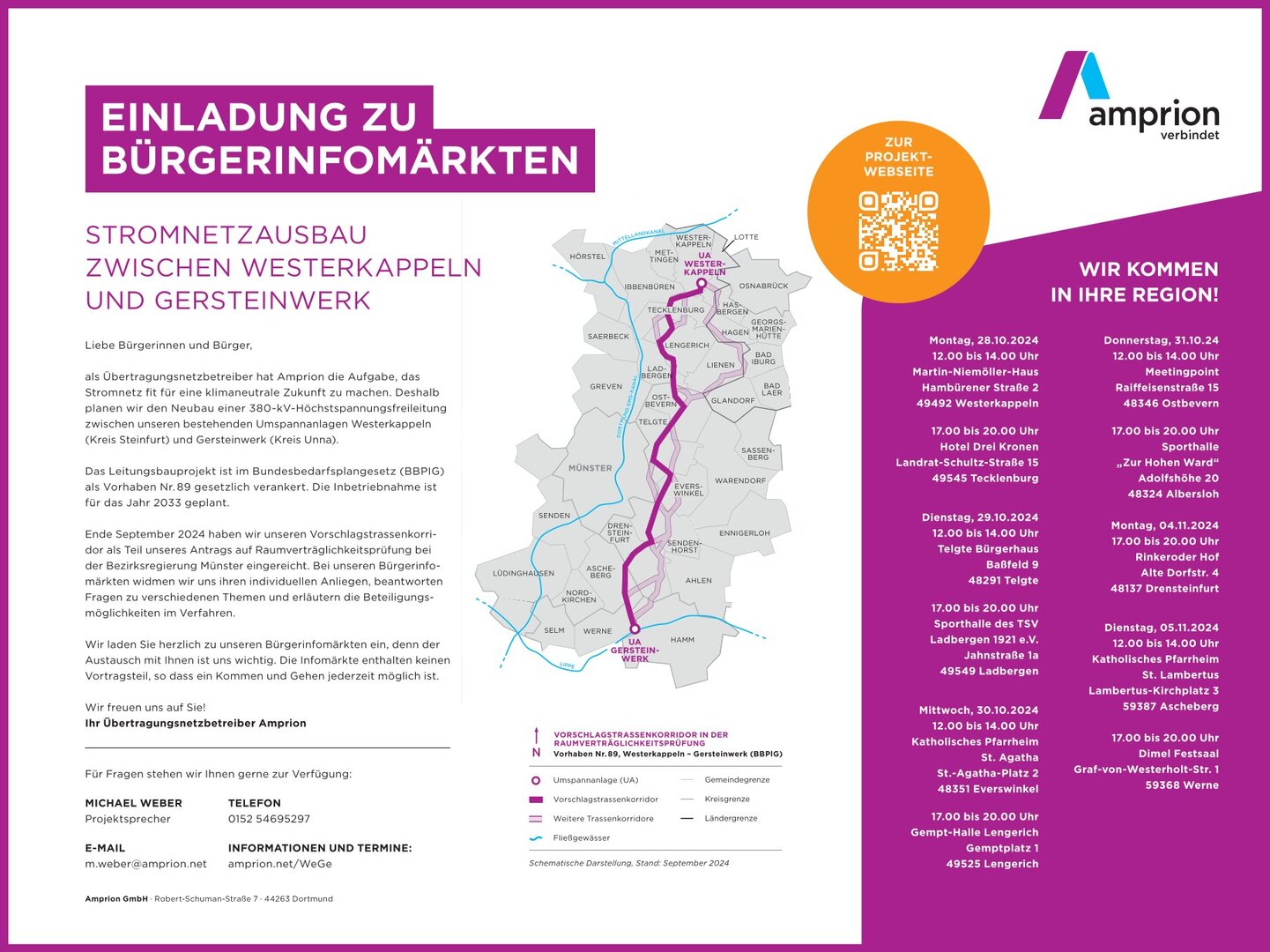 Hinweis der Fa. Amprion GmbH - Einladung zu "Bürgerinfomärkten"
