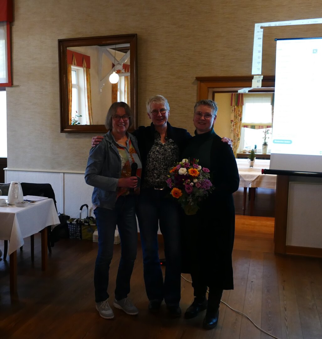 Danach stärkte man sich erst durch ein Frühstück. Das in der Gaststätte Antrup immer sehr reichhaltig und schmackhaft ist. Dabei tauschten sich die Frauen lebhaft untereinander aus. Um ca. 10.30 Uhr eröffnete Annemarie Große Börding offiziell die Versammlung.Zunächst wurde gefragt, ob es Einwände zum Protokoll des Vorjahres gibt. Außerdem wurde ein Rückblick auf die Veranstaltungen des letzten Jahres gegeben. Der Kassenbericht vorgetragen von Elisabeth Meyer zu Natrup, wurde von Hannelore Kober und Mechtild Buck geprüft. Hannelore Kober bat um Entlastung des Vorstandes, die von den anwesenden Mitgliedern gewährt wurde. Mechtild Buck wurde als Kassenprüferin verabschiedet und Marita Benne neu gewählt für das kommende Jahr. Zum Abschluss der Versammlung wurde Annemarie Große Börding ein Blumenstrauß vom Team durch Gabi Völler und Ruth Schulte to Bühne überreicht, als Zeichen der Wertschätzung für die gute Zusammenarbeit. Die Veranstaltung endete mit einer Power Point Präsentation, die Fotos vom vergangenen Jahr zeigte und schöne Erinnerungen weckte.
