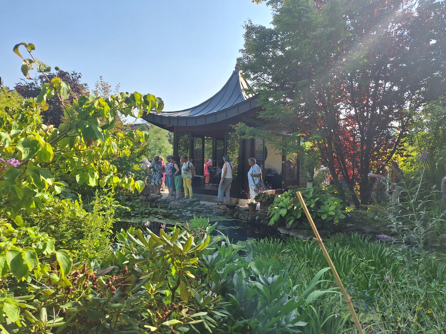 Die verschiedenen Vereinsvorstände trafen sich beim Gasthaus Thies in Gaste um von dort gemeinsam mit dem Bus weiter zu fahren.Die Amazonenwerke in Gaste waren das erste Ziel.Dort wurden die Landfrauen von Matthias Beuke empfangen. Er führte sie mithilfe einer PowerPoint Präsentation in die Geschichte der Amazonenwerke ein. Im Anschluß hatten die Teilnehmer die Gelegenheit das Werk in Hasbergen/Gaste zu besichtigen in dem vorwiegend Kunstdüngerstreuer gefertigt werden. Nach dieser informativen Führung ging es weiter zum Farmhouse NO 50, wo in gemütlicher Atmosphäre Kaffee serviert wurde. Den Landfrauen wurde auch die Möglichkeit geboten hinter die Kulissen des frisch renovierten Bauernhauses zu blicken.Die nächste Station der Fahrt war der wunderschöne gestaltete japanische Garten bei Familie Langer in Hasbergen. Hier konnten die Anwesenden einen Naturteich,einen japanischen Pavillon sowie eine beeindruckende Auswahl an großem Bambus und verschiedenen Blumen und Gräsern bewundern.